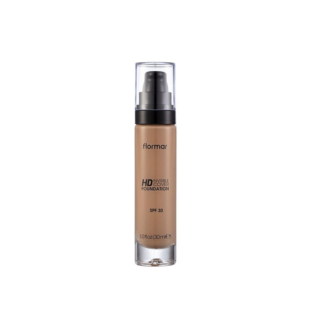 Flormar Invisible Cover HD Light Texture & Semi-Glossy Finish SPF30 Foundation hides sunspots, acne-scars and tone inequalities on the skin with a natural look. Thanks to its light texture, it is easily applied to the skin and does not create an artificial layer appearance. Thanks to its moist finish, it creates a bright effect on dry skin without causing a powdery appearance. Its long-lasting formula allows skin make-up to be protected throughout the day without running or smudging.